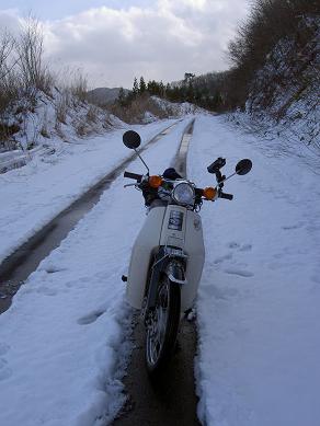 雪積もってますが、なぜか轍部分だけ完全ウェット。