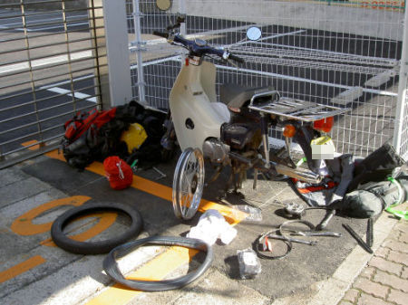 カッパを着込んで、荷物もひいこらとパッキングしなおして